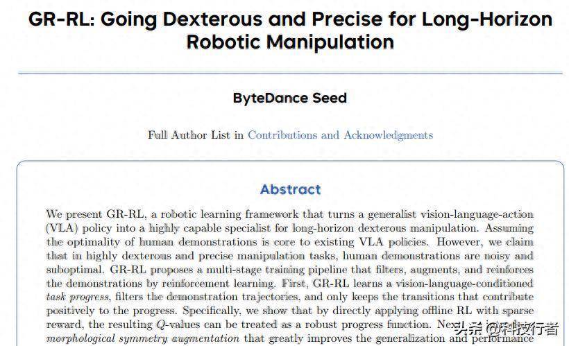 然而,字节跳动的研究团队却成功地让机器人掌握了这项技能。他们开发的GR-RL(Going dexterous and pRecise for Long-horizon Robotic manipulation,意为"面向长视距机器人操作的灵巧精确方法")系统,不仅仅是一个技术演示,更是机器人学习领域的一次重大飞跃。这项研究解决了当前机器人技术面临的三大核心挑战:如何实现毫米级的精确控制、如何处理柔软易变形物体、以及如何在长序列任务中保持稳定性能。